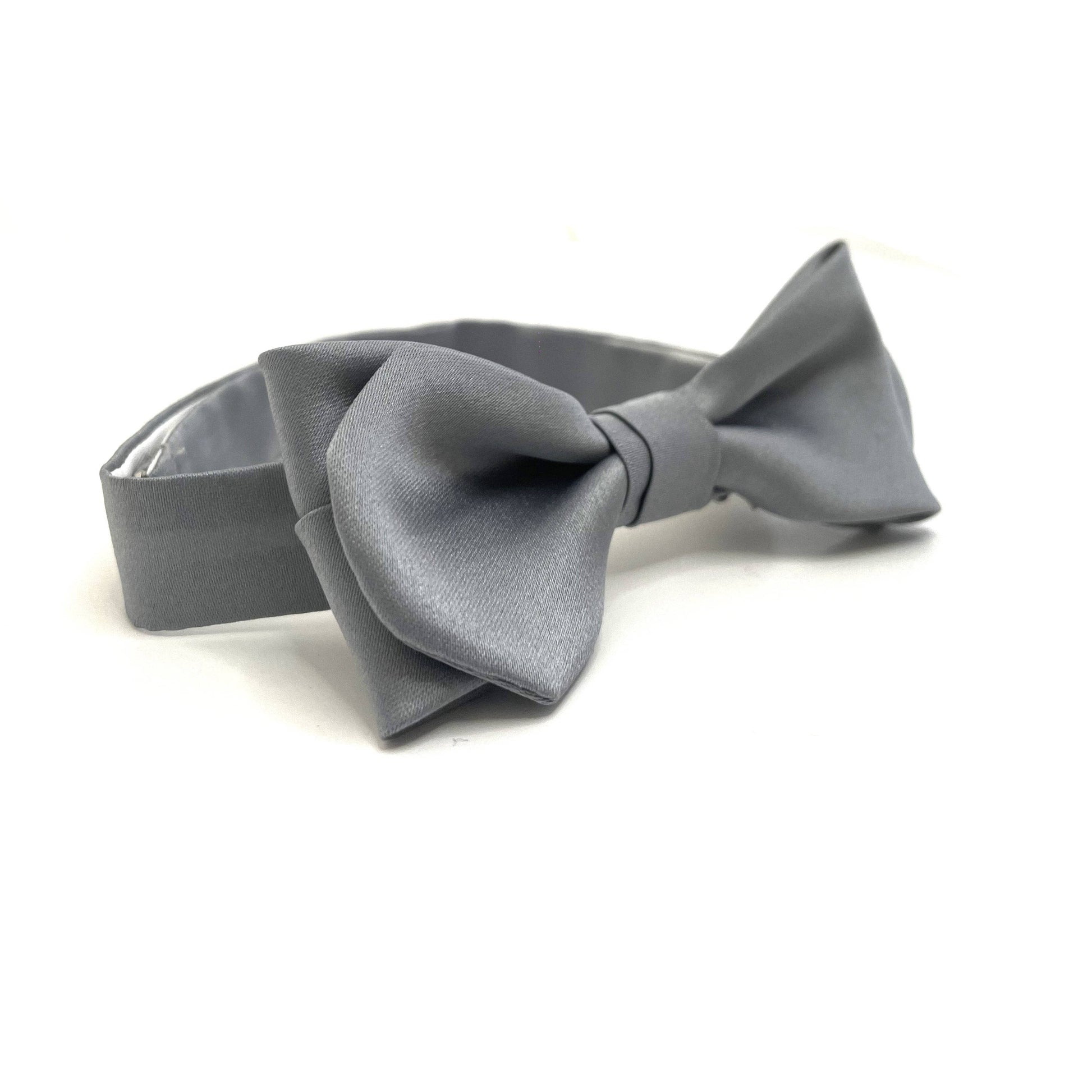 Pearl grey rounded-end bow tie