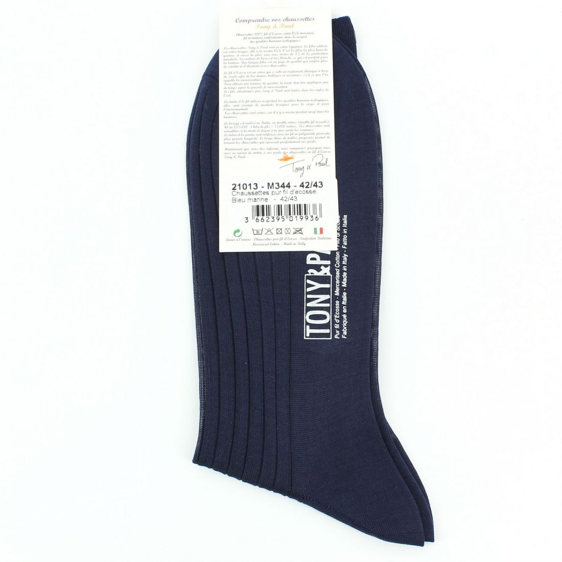 Tony & Paul's luxury navy blue socks are expertly crafted in Italy from superior quality Scottish yarn to the ELS (Extra Long Staple) standard, which ranks the fiber among the longest and finest in the world, and hand-tied for optimal comfort. The socks are high at mid-calf, do not compress, and are reinforced in the heel and toe areas to provide increased durability. Give your feet the premium quality they deserve!