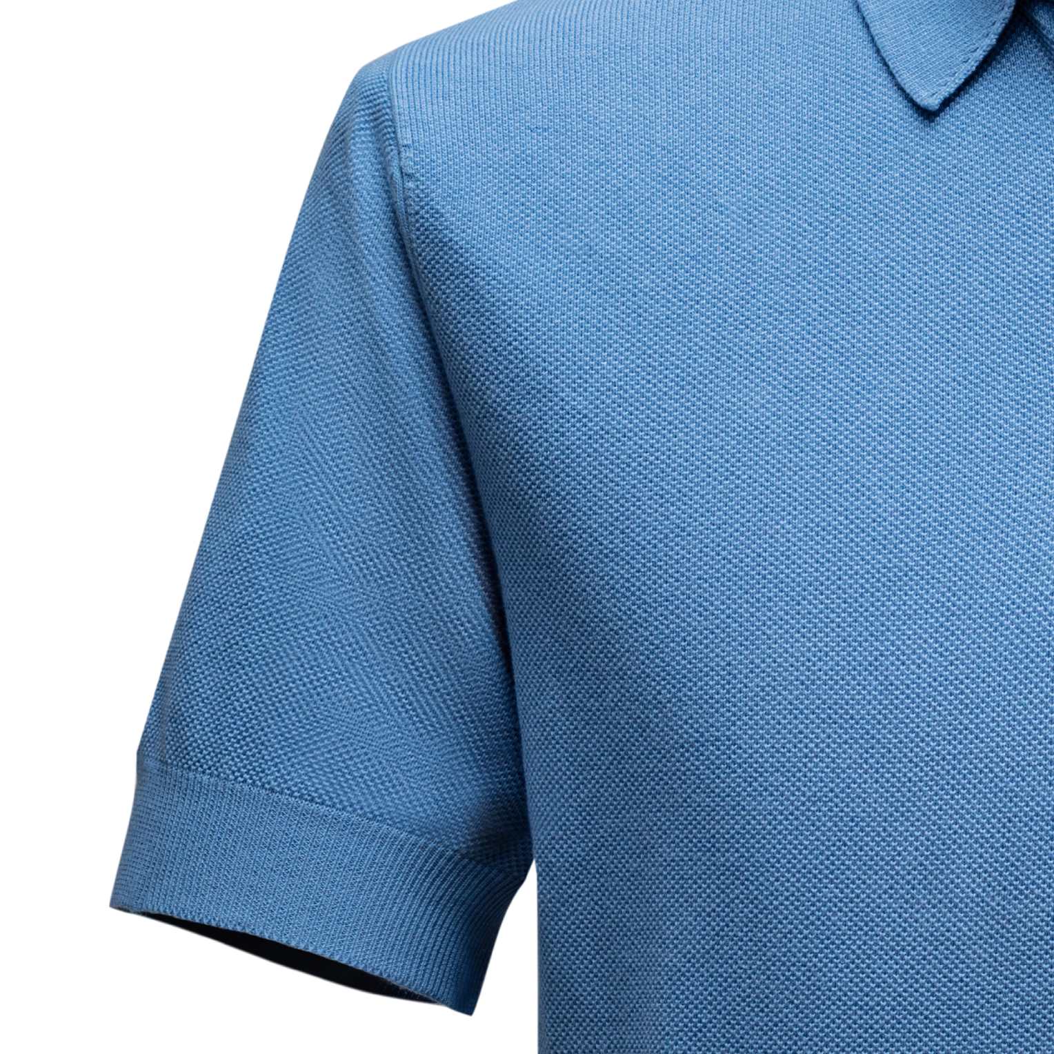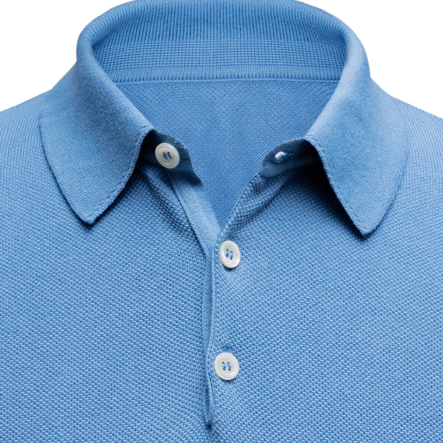Discover our sky blue cotton pique knit polo shirt. Elegant and comfortable, it features a 3-button closure, polo hem and ribbed-effect sleeves. Machine washable for easy care. Perfect for a sophisticated everyday look.